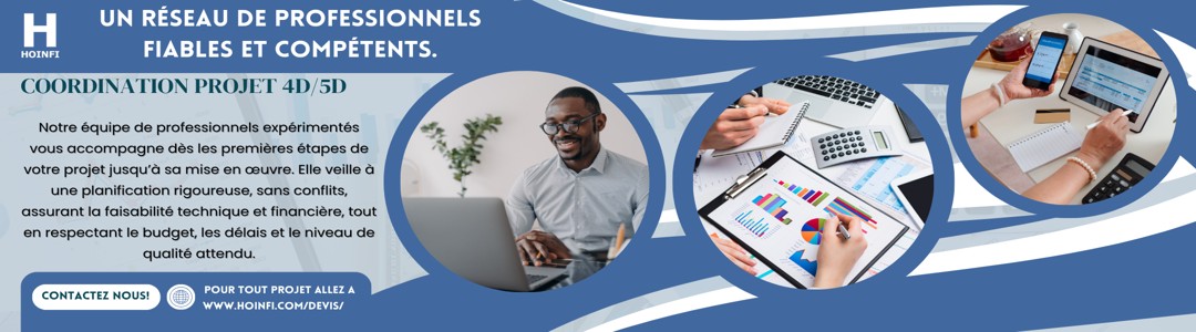 Profitez de l'internet pour accroitre vos rendements entreprise. Aujourd'hui, vous avez la capacité de reduire drastiquement vos charges salariales et matérièles avec la solution en ligne HOINFI. Peu importe votre position géographique, accedez à nos solutions d'accompagnements pour gerer éfficacement votre entreprise et vos projets (petits, moyens, grands).